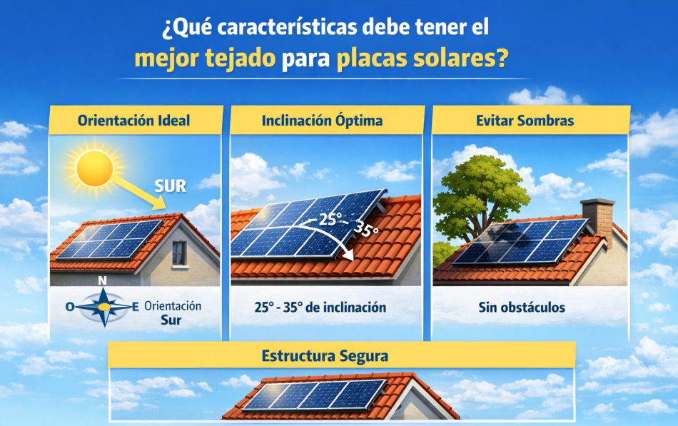 Antes de analizar los distintos tipos de tejado, es fundamental conocer qué condiciones hacen que un tejado sea ideal para instalar placas solares.