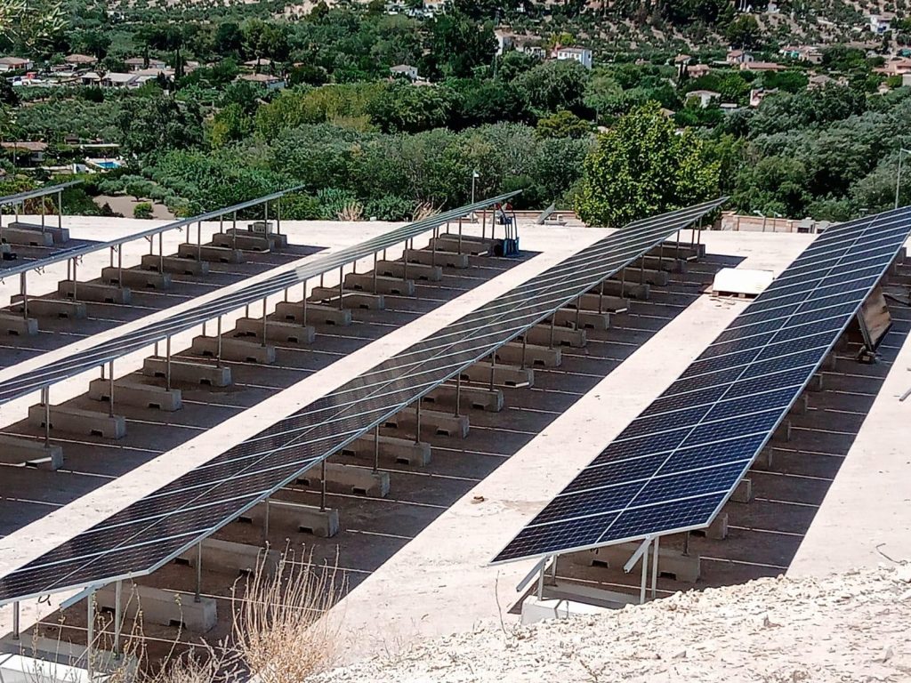 La instalación de los paneles se ha realizado sobre una estructura metálica lastrada. Este sistema presenta grandes ventajas, sobre todo para cubiertas planas o superficies donde no se desea realizar perforaciones ni anclajes directos.